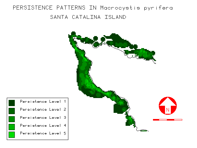 The kelp beds surrounding the island should be viewed as a metapopulation, or population of populations (sensu Levins 1970). The geographic differentiation of persistence has important consequences relative to metapopulation characteristics, and therefore the designation of appropriate marine reserves to protect both giant kelp and the many marine species that utilize it for habitat or food. Disturbance events may decimate or remove protected kelp beds if they are restricted to a limited range of site conditions, as is presently the case around Catalina. Existing reserves, located almost entirely along Catalina's leeward coast, are characterized by a disturbance regime dominated by large-scale, long-term temperature events. The short-term, winter storm-dominated disturbance regime and higher mean persistence on the windward side, suggests there are gaps in this reserve system. New marine reserves should be designated on the windward side to complement existing ones on the leeward side. Then, in the event of large-scale disturbance such as elevated El Niño temperatures, "remnant patches" (sensu Forman and Godron 1981) of kelp persisting in refugia may provide "seed stock" for the re-establishment of populations around the island.